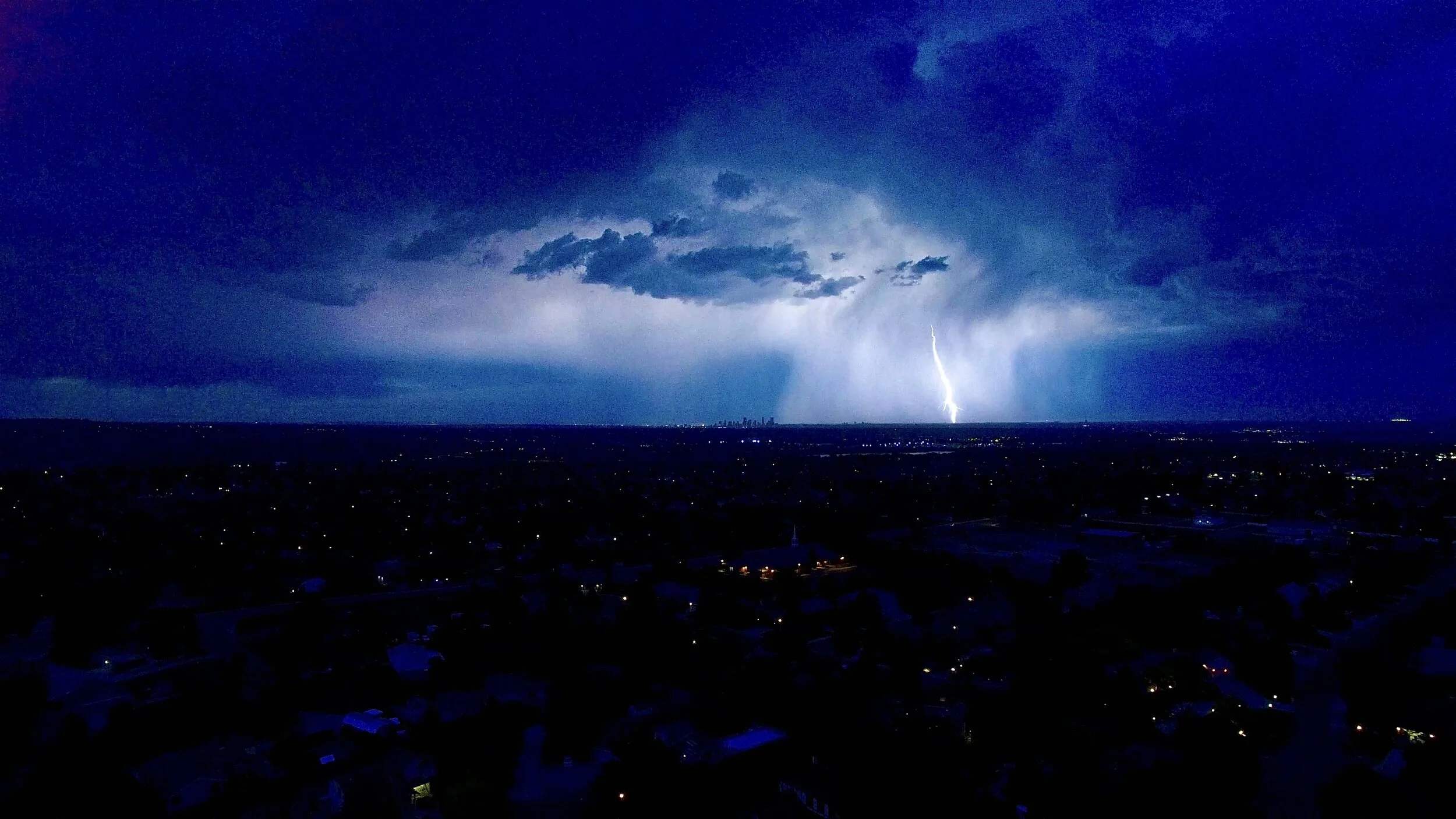 This is an image I captured during a summertime thunderstorm. A lightning strike in the distance creates a powerful and electrifying silhouette of downtown Denver.
